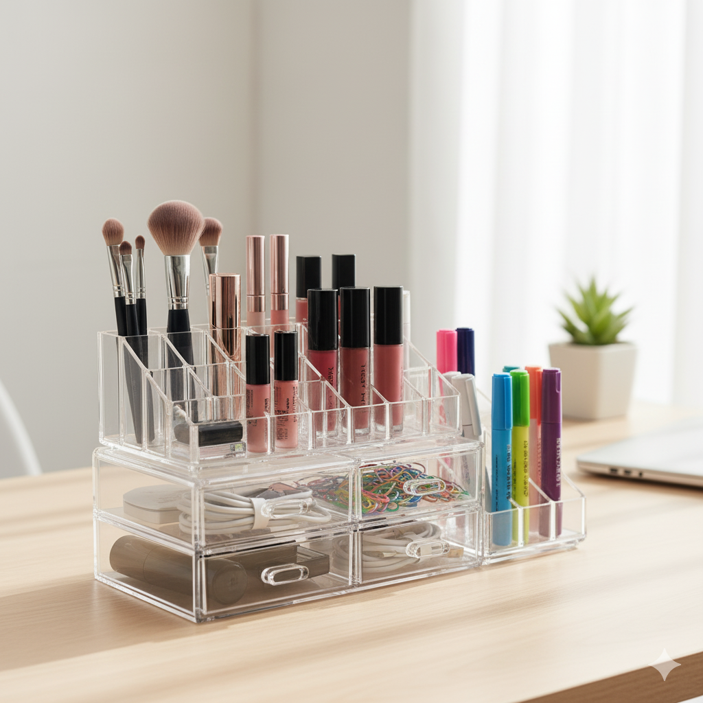 🥈 2위: 책상 위를 깔끔하게! 심플한 투명 아크릴 정리함 세트