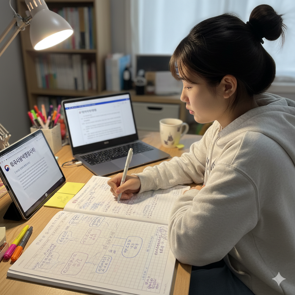 오답 노트는 거창할 필요 없습니다. 틀린 문제 번호와 정답 키워드만 적거나, 교재/요약본의 해당 파트에 '기출 50회 오답!'이라고 표시하는 것만으로 충분합니다. 중요한 것은 **반드시 틀린 문제를 다시 보고 암기**하는 것입니다.